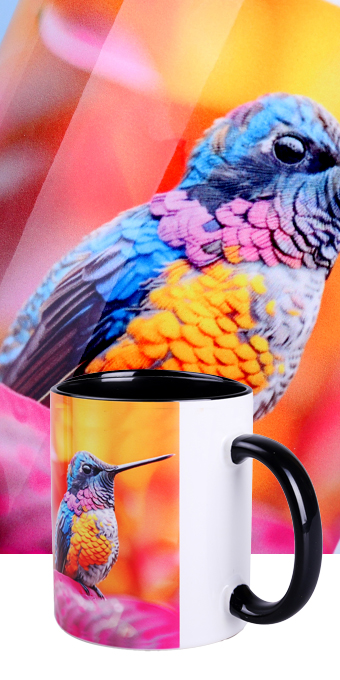 Wysokiej jakości nadruk sublimacyjny przenoszony na powierzchnię ceramiki za pomocą specjalnego papieru. Zdobienie dostępne wyłącznie na wybranych kubkach pokrytych wcześniej warstwą bezbarwnego lakieru – poliestru